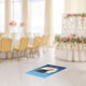 Congratulate the graduates. Mortarboard and diploma with editable text on a blue background. Put this floor decal at the entrance to your function room for the big graduation party.