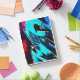 I was super excited when I got my cover in. It is attached by a magnet across the edge. I don’t think it will be very protective but it is very cute. I’m going to keep my iPad in a sleeve and use this face cover while I have it out. It folds to create a tilt for better viewing and to keep the iPad at a slight angle for typing. The colors are bright and it is fun. I’ve really enjoyed it. The personalization looks like amazing. It is the same color as the picture and is the same brightness. Well done! Very nice.