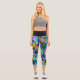 For those like me that aren't afraid of color. This digital graffiti is jam packed with color and texture. You have greens, blues, yellow, pink, orange, black, turquoise in a variety of shapes and patterns with a touch of bling. These eye popping capri leggings will make a bold addition to your wardrobe.
