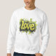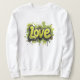 T-shirt. This design powerfully displays the word "Love" in an authentic graffiti script, utilizing a distinctive color scheme of bold black, rich brown, and striking lemon green. It's an artistic expression that celebrates finding beauty and connection in unexpected places, reflecting a love that's both resilient and organic.