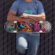 Unleash your inner rebel with this graffiti-inspired skateboard deck, featuring bold street-style lettering "SKATE & DESTROY" in explosive spray-paint textures. Designed to capture the raw energy of city streets, this deck blends urban culture, hip-hop flair, and street art attitude into one visually striking graphic. Vibrant colors, paint drips, and layered tags give it an authentic, gritty vibe that turns your skateboard into a moving canvas. Perfect for skaters who live to ride the edge of rebellion, freedom, and urban expression.