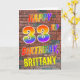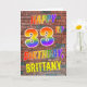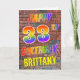 The front of this vibrant, exciting and fun birthday-themed greeting card design features the message "HAPPY 33RD BIRTHDAY" with letters having a multicolored rainbow like gradient pattern, and a editable name colored yellow, on a wall-of-bricks pattern background. The style is inspired by that of graffiti or street art drawn on a wall. The inside features a personalized birthday greeting message. A fun, happy, personalized birthday greeting card like this might be given to celebrate somebody’s thirty third birthday. [~Z0000357]