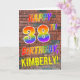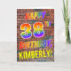 The front of this eye-catching, vibrant and fun birthday-themed greeting card design features the message "HAPPY 38TH BIRTHDAY" with letters having a multicolored rainbow like gradient pattern, and a personalized name colored yellow, on a brick wall pattern background. The appearance is inspired by that of graffiti or street art drawn on wall. The inside features a customizable birthday greeting message. A happy, fun, customized birthday greeting card like this might be used to send a birthday greeting message to somebody celebrating their 38th birthday. [~Z0000357]