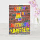 The front of this exciting, vibrant and eye-catching birthday-themed greeting card design features the message "HAPPY 4TH BIRTHDAY" with letters having a multicolored rainbow like gradient pattern, and a personalized name colored yellow, on a wall-of-bricks pattern background. The look is inspired by that of graffiti or street art drawn on a wall. The inside features a birthday greeting message that can be customized. A happy, fun, customizable birthday greeting card like this might be used to send a birthday greeting message to somebody who is celebrating their 4th birthday. [~Z0000357]