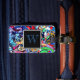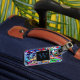 Street-style artwork is fashionable and trendy. This graffiti design is a great way to identify your luggage. Change the name, address, city, state and zip code on the back and the monogram on the front.