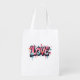 I own a lot of reusable grocery bags, but this one holds its box shape and simply stands up on its own even if there is nothing in it. Its stiffer than your regular reusable bag too, and the material is water resistant. I poured water on the exterior and it didn't penetrate inside to the other side. I'm buying a couple more. Wish I knew how durable these bags were or I would have purchased a few more with my initial order. I also like how it folds and buttons up when not in use, making it easy to put into a handbag or luggage. I haven't used this bag yet, as I purchased it for travel use, like when you're at the airport and need to small sturdy bag to place any airport purchases in, like food, souvenirs etc. I can tell you when you first see this bag, it looks very cheap, but after closer inspection of the material and the seams its a very sturdy reusable bag. I tested it out by putting some really heavy objects inside and I could not observe any stress to the bag at all. Another thing I like about it, is the fact the medium size that this is makes it easy to just carry it in your hand without the bottom of the bag scraping the ground, like most other bags do when you're short. That alone, deserves 5 stars. I just wish there were more colors to choose from! The PDX Airport Carpet printing looks just like the photo, and using this bag during travel might be a conversation piece when/if a native from Oregon happens to see it.
