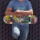 Custom print graffiti design freedom skateboard. Vivid colour and subtle text.