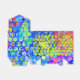 This digital graffiti has all the vivid colors of salt water fish. Multiple shades of blue are mixed with yellow, orange, purple, lime green, pink, aqua, black. The various textures and opacities give the design depth.
