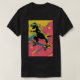 A green T-Rex shreds across a splattered yellow-pink backdrop, rendered with stencil-like strokes. Urban energy and bold contrast make this a standout street-art design.