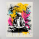 Graffiti-inspired street art poster of a boy reading, with stencil details and bright splashes of yellow, pink, and blue. A powerful urban design for modern home decor, classrooms, or gifts for graffiti and street culture fans.