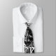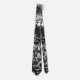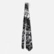 this white tie utilizes black graphics of cars, ladies, and other imagery to create a walking graffitied wall