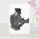 Card features artwork from an advertisement by Folmer & Schwing Manufacturing Co. The figure pictured holds a Graflex camera. Blank inside.