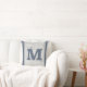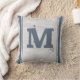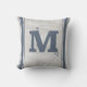 Grain Sack Blue Gray Vertical Stripes Monogram M Throw Pillow