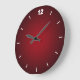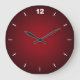 This striking and bold clock has adesign featureing a simple background of red in the center, fading darker and darker towards the outside edge where it is black. There's a grainy texture thoughout the design as well.