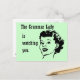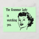 Grammar Lady Says: Grammar Lady is watching you! Grammar Lady wants you to mind your apostrophes, your "their"s and "they're", and your "its" and "it's"...she's got her eye on you. Simple single-color design with text and face.