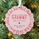 Ornament card featuring customizable text "Grammy we love you", a little red heart and the grandchildren's names along with a photo on the back. Pink or custom color background.