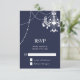A beautiful crystal chandelier with decorative chain swags, on a dark blue background, sets the tone of this wedding RSVP. A different view of the same elegant chandelier also decorates the back of this response card. This RSVP is shown on the basic paper; however, I suggest the weight and texture of the linen paper. This is part of a full wedding collection, and available in several different colors; however, if additional pieces are needed just let us know at prettyfancyinvites@gmail.com.