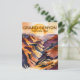 This watercolor-style illustration of the Grand Canyon blends soft pastel tones with vintage retro charm. Inspired by 1950s mid-century travel posters and plein air painting traditions, the scene captures sunset light washing across the canyon’s layered cliffs. Warm oranges, muted pinks, and lavender shadows create a dreamy, nostalgic mood, while a classic mid-century car parked at the rim evokes the romance of desert road trips. The Grand Canyon’s vast scale, shifting colors, and dramatic depth have inspired generations of artists. Here, the fluid brushwork and atmospheric tones highlight the canyon’s natural grandeur while offering a fresh, painterly interpretation of Arizona’s iconic landscape. The design reflects both the timeless beauty of the American Southwest and the heritage of retro travel illustration. Customizable text is available, so you can personalize it with your own message, location, or name, making it perfect for souvenirs, travel mementos, or unique greeting cards.