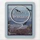 A digital painting of the Colorado River moving through the Grand Canyon in Arizona. Three large black birds circle in the sky. A white, black and gray circle is in the top center of the poster, "Grand Canyon", is written within the circle. At the bottom of the poster is the state name and the year the area became part of the National Parks Service. A simple dark border finishes the style. Image Copyright ©2023 Kimberly J Tilley.