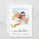 Let guests know to save the date for your wedding with this pretty minimalist photo card with a map outline of the location of your event.