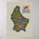 Grand duchy of Luxembourg map decorated with a biplane in a vintage style.