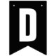 These black and white bunting flags spell 'Grand Opening!'. There are also three flags you can display your company logo.