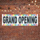 Grand opening event sign with attention-getting colorful pennant border, confetti background, and large type. Business Grand Opening Banner to advertise that a new business is open or at a new location.