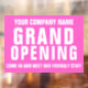 Retail sale signage window cling banner, inform customers of your opening and help welcome customers in with this grand opening banner in bright pink and white. Background color can be changed to suit your business colors. Ideal to generate foot traffic into your new business and alert customers you are open. Customize with your own business name and message details.