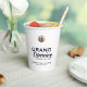 Elevate your grand opening celebration with our Grand Opening Event Paper Cups. These cups feature a brushed gold seal logo at the top, 'Grand Opening' in bold navy blue script, your company name in classic typography, and the event date in modern, elegant font. Use these paper cups to brand your beverages and provide a memorable touch to your event.