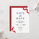 Modern grand opening save the date card featuring an elegant flowing ribbon and a pair of gold scissor perfect for product reveals, new businesses, housewarming parties and similar occasions.