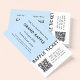 A simple raffle ticket template in a modern typography in a minimalist style in simple black and white on a pastel baby blue background. The template can easily be customized with your event details including date, entry price, prizes and charity details. You can also easily upload your event or charity website QR code.
