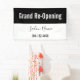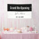 A banner lets everyone know your beauty salon has re-opened. The white text at the top says 'Grand Re-Opening'. The white text is on a black stripe. A white stripe at the bottom has an elegant black script for the beauty salon's name. Black display digits are also available for the salon's phone number.