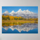 Fresh snowfall covers the Grand Teton Mountains on an autumn morning, reflected in the waters by Schwabacher Landing, USA, Wyoming, Grand Teton National Park. | DanitaDelimont.com | Elizabeth Boehm | US51 EBO0716