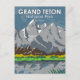 Grand Teton vector artwork design. The park includes the major peaks of the Teton Range as well as most of the northern sections of the valley known as Jackson Hole.