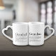 These mugs are an adorable gift option for Valentine's Day, Wedding/Engagement gifts! I love the way they shape and fit together and the print was spot on! I would order this again. The printing was clear and was as shown on the site. I was able to change the font to one I really liked.