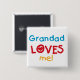 Grandad Loves Me T-shirts, cards, stickers, bodysuits bags, and more with colorful red, yellow, and blue text and heart design. These Grandad Loves me apparel and gift items will make grandad smile!