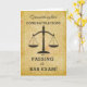 Your granddaughter has just achieved a very difficult accomplishment. She has passed the bar exam and this card shows how proud you are of her! Legal scales are shown on the front with a background of the scales. They will be tipped in her favor after all of her hard work.