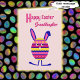 A cute Easter bunny in the shape of an Easter egg, decorated with spots, stripes and zigzags in pink, blue and yellow. The message inside can be customised, or you can use the suggested "A happy Easter bunny is here to wish a special granddaughter a very Happy Easter!"