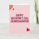 This Valentine's Day card features a pale pink background with a sweet, simple layout. In the center, bright red text reads “HAPPY VALENTINE’S DAY, GRANDDAUGHTER,” set in a rounded, easy-to-read letter style. The message feels direct and caring, like a warm note meant just for her. In the upper left corner, part of a heart-shaped cookie peeks in, with a light golden crust and tiny white sprinkles on top. Near that cookie, a small red heart floats gently, adding a quiet touch of affection. A larger red heart sits in the lower right corner, balancing the design and making the page feel lovingly framed. The pink and red colors together feel cozy and romantic, making it a meaningful card to give 🥰❤️. Hope it helps you share Valentine’s Day sentiments in a warm, caring way.