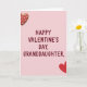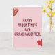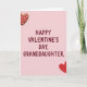This Valentine's Day card features a soft pink background that feels gentle and loving. The main message reads “HAPPY VALENTINE’S DAY, GRANDDAUGHTER” in deep red, with simple, easy-to-read letters placed right in the center. In the upper left corner, there’s a heart-shaped cookie shown partly in view, with a golden-brown edge and coral-pink icing dotted with small white circles. In the lower right corner, a solid red heart peeks in, adding a classic touch of love. The mix of the sweet cookie detail and the simple heart makes the design feel both cozy and caring. It’s a meaningful card to give because it speaks directly to a granddaughter and feels like a small reminder that she’s cherished ❤️. The overall look is bright and calm, making the message stand out without feeling busy 🥰, and it’s a friendly way to share Valentine’s Day sentiments.