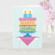 A birthday card for your 80 year old Grandfather. "Happy Birthday" is on each layer of the cake with pink decorative icing separating them. A subtle background of yellow and blue anchors the design. Bright colors and a bold graphic styling give this birthday wish a festive feel. You can also change "Grandfather" to personalize for any one.