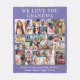 A custom purple photo collage keepsake blanket for that perfect grandma gift featuring 30 photos of her grandchildren, family, pets, etc., one or two lines of text, such as "we love you grandma," and your names in elegant white typography.