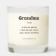 Celebrate Grandma with this unique dictionary-style candle. Perfect for gifting or decorating any space, this candle honors that special person who always knows how to give love, advice, and hugs. It fills the room with a warm, comforting fragrance. Ideal for birthdays, special occasions, or simply to say “I love you, Grandma.”