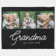 Personalized Grandma Established 3 photo fleece blanket with elegant modern script typography. A meaningful, heartfelt gift for your grandmother, showcasing 3 favorite family photos, and the years she became a grandma.