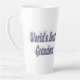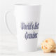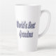 Latte mug with World's best grandma in 3D blue-gray text. Mug available in several styles and colors.