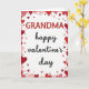This Valentine's Day card features a white background filled with red and pink hearts scattered all around the edges. Some hearts are large and sit near the corners, while smaller ones float between them, with soft shadows that make them look lightly layered. In the center, the word “GRANDMA” is written in big red letters with a simple, straight style that’s easy to read. Just below it, “happy valentine’s day” appears in smaller black cursive lettering, like a neat handwritten note, placed right under the main word. The mix of deep reds, rosy pinks, and a few darker maroon hearts gives the border a cozy, loving feel without being too busy. It feels meaningful because it puts Grandma front and center while surrounding her with little signs of love ❤️.