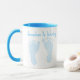 Surprise the "grandma to be" by announcing a pregnancy with an adorable mug with blue baby foot prints. Personalize the text in the template field to change it on both sides or click customize if you prefer a different typeface style, size, and color.