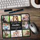 Give the best grandma a custom multi-photo mouse pad that she will enjoy all year. You can personalize with eight photos of grandchildren, children, other family members, pets, etc., customize the expression "We Love You Grandma" to "I Love You" and whether she is called "Granny," "Nana," "Mommom," etc., and add the grandchildren's names, all in modern white typography against a black background.