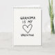 This card features the message “GRANDMA IS MY VALENTINE” as the main focus, centered on a white background. The words are written in loose, hand-drawn black letters that look a little uneven in a sweet, honest way. In the middle of the message, a simple black heart takes the place of a small part of the text, and it looks slightly lopsided like it was drawn by hand. A soft grey border frames the card, filled with tiny textured marks that resemble scattered numbers or abstract symbols. The simple black-and-white look keeps your attention on the message and makes it feel sincere and close to the heart ❤️. It’s a meaningful card to give because it says clearly that your grandma is loved and remembered on Valentine’s Day, like a warm thank-you for everything she’s done. Share it to send a little extra love and Valentine’s Day feelings her way 🥰.