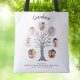 This modern and stylish Grandma tote bag is decorated with a colorful mosaic family tree.